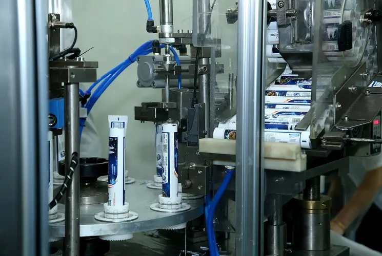 - Modern toothpaste tube filling and capping machines in private label manufacturing facility Guangzhou Guangdong