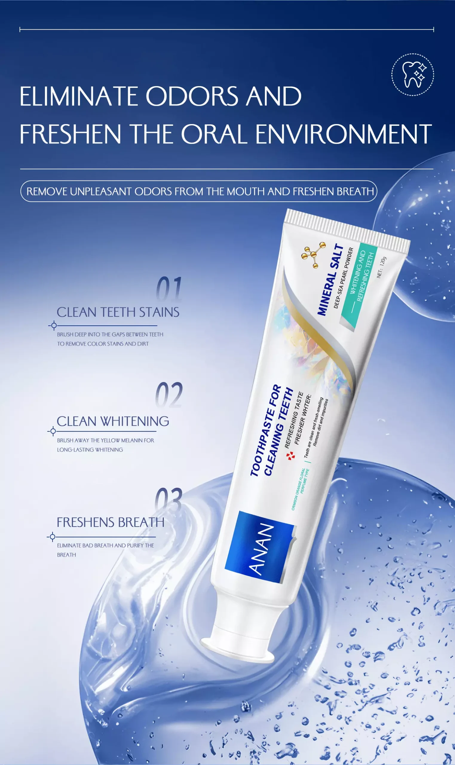 - Natural Mint Extract: Delivers long-lasting fresh breath and a refreshing brushing experience.