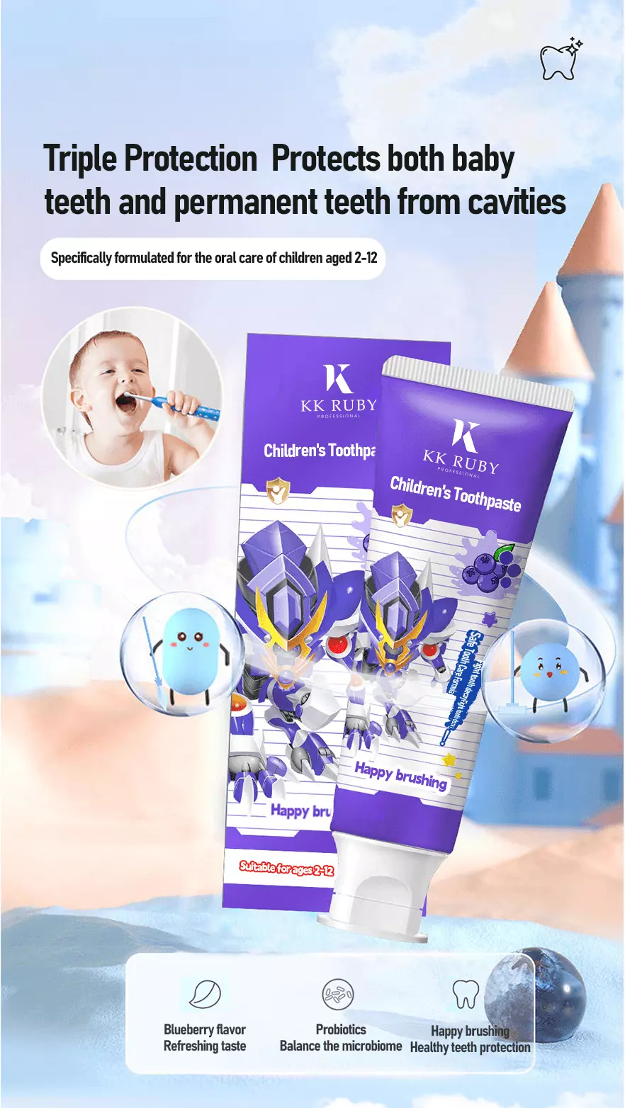 Fluoride-free probiotic kids toothpaste blueberry flavor with triple cavity protection – OEM private label children's oral care