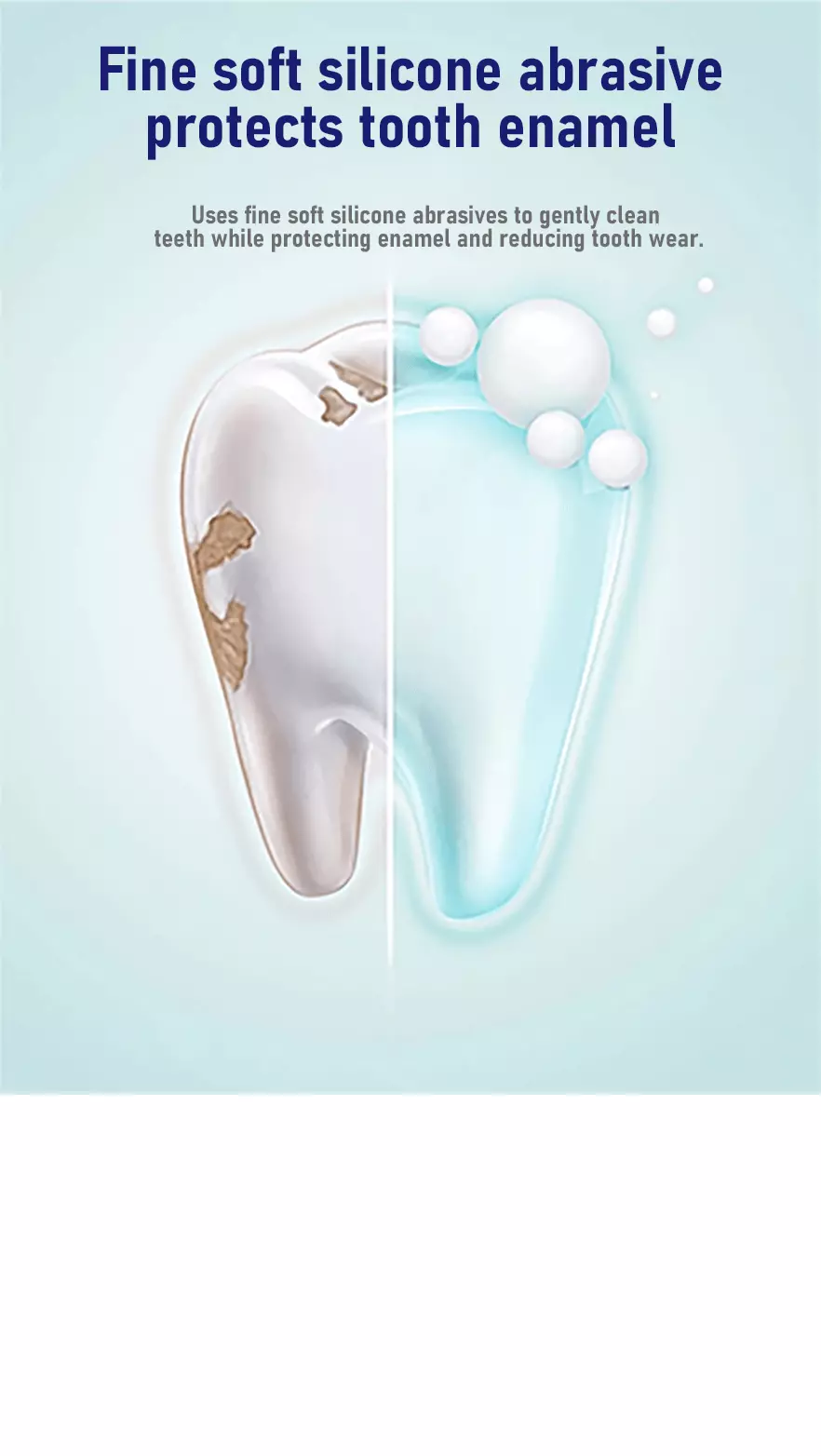 • ✓ Gentle Cleaning: Food-grade soft silica + xylitol protects enamel without abrasion.