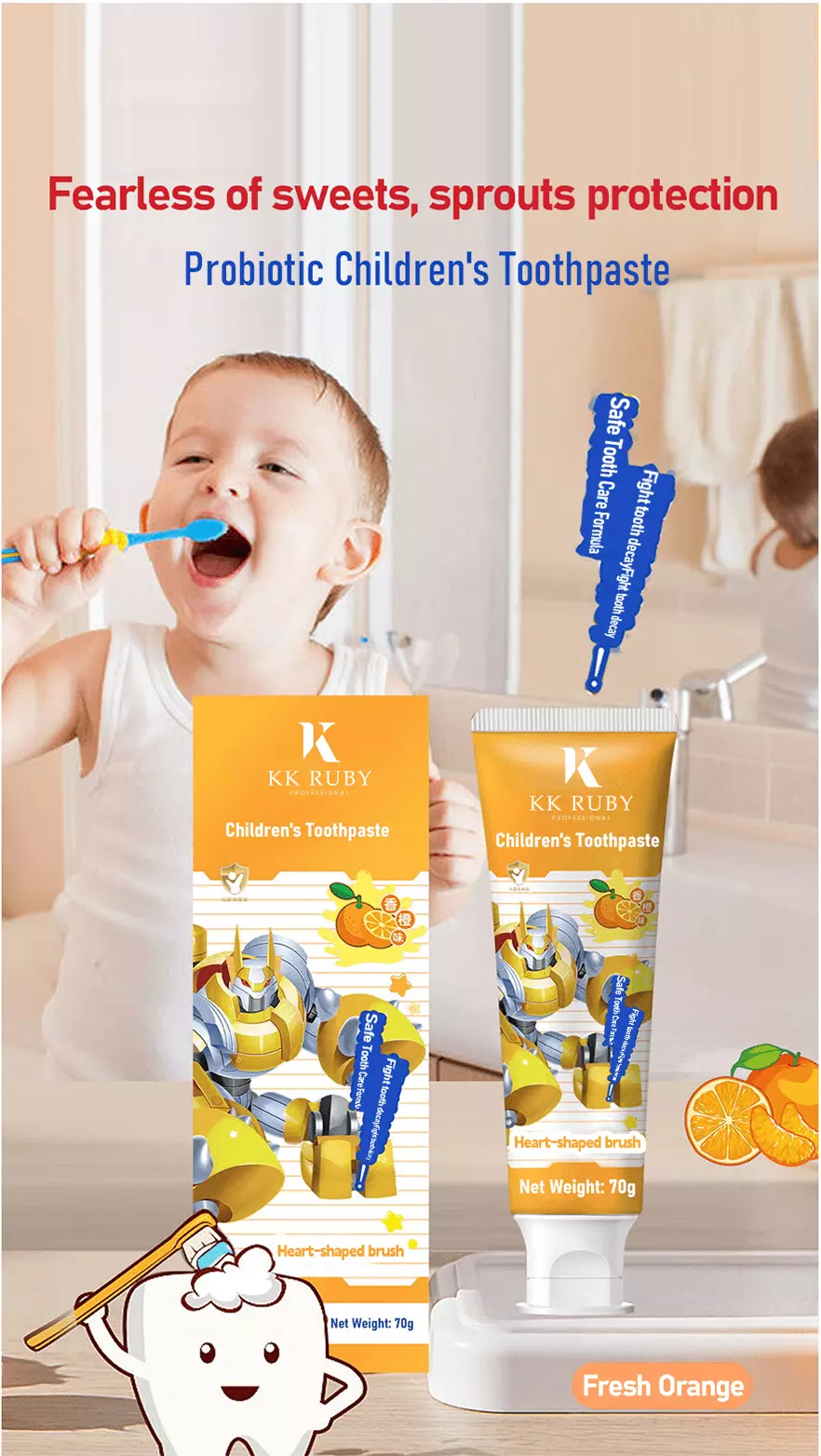 Orange flavor probiotic kids toothpaste fearless of sweets – safe anti-cavity protection for ages 2-12, OEM private label customization