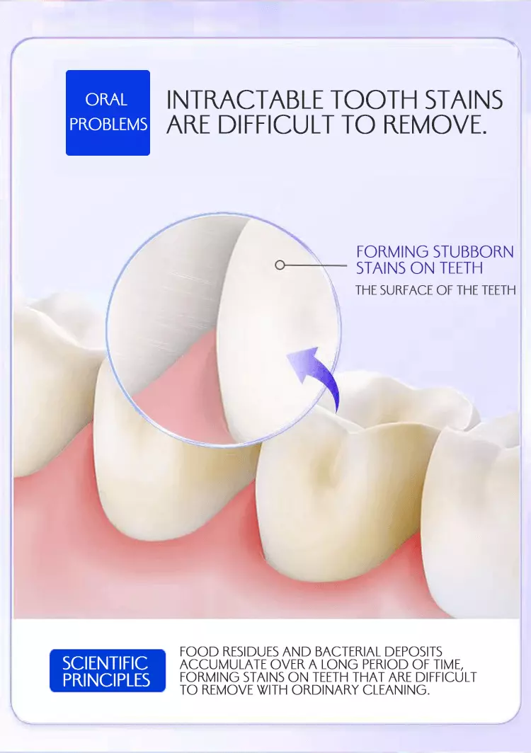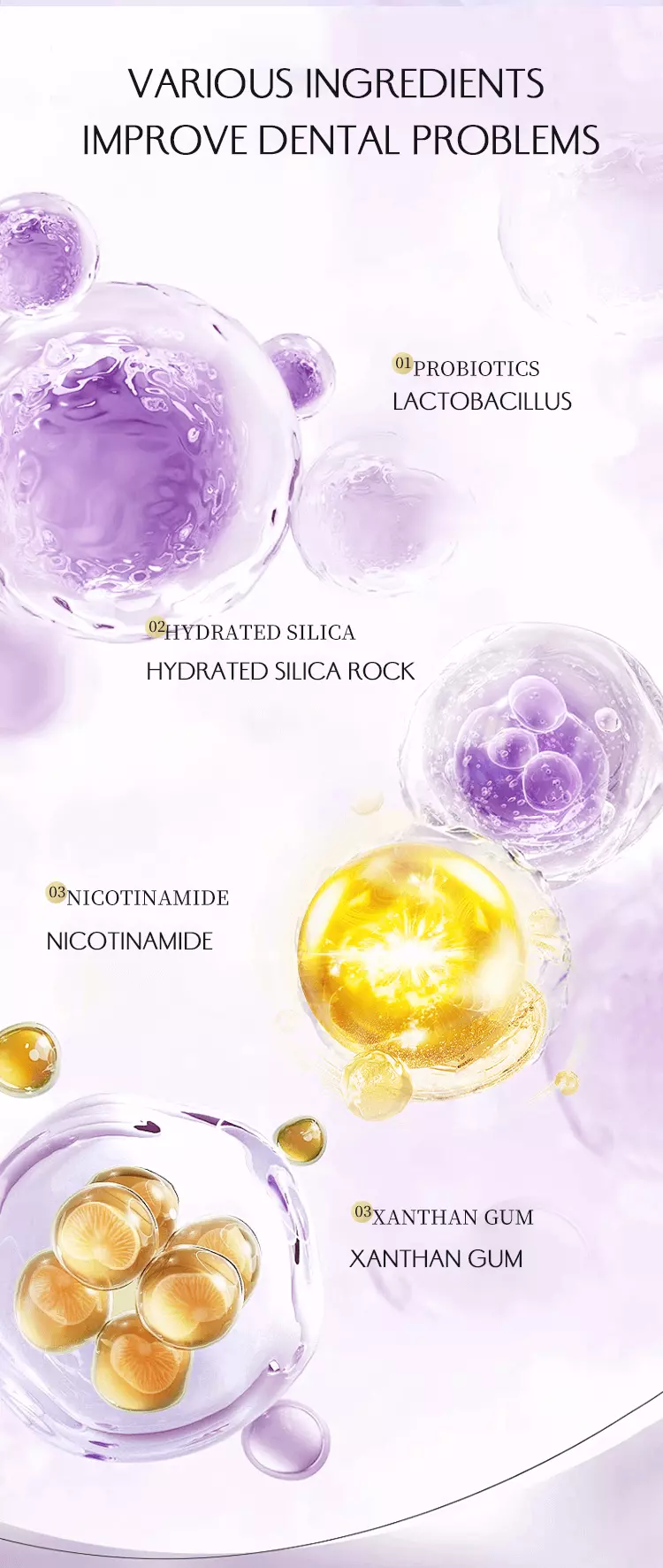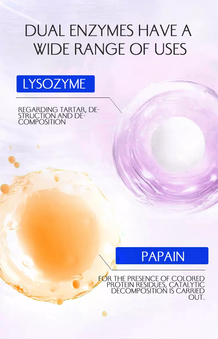 - Dual Enzymes (Lysozyme & Papain): Naturally derived enzymes that catalyze the breakdown of protein-based stains and plaque biofilm, reducing tartar buildup over time (supported by studies on enzymatic oral care).