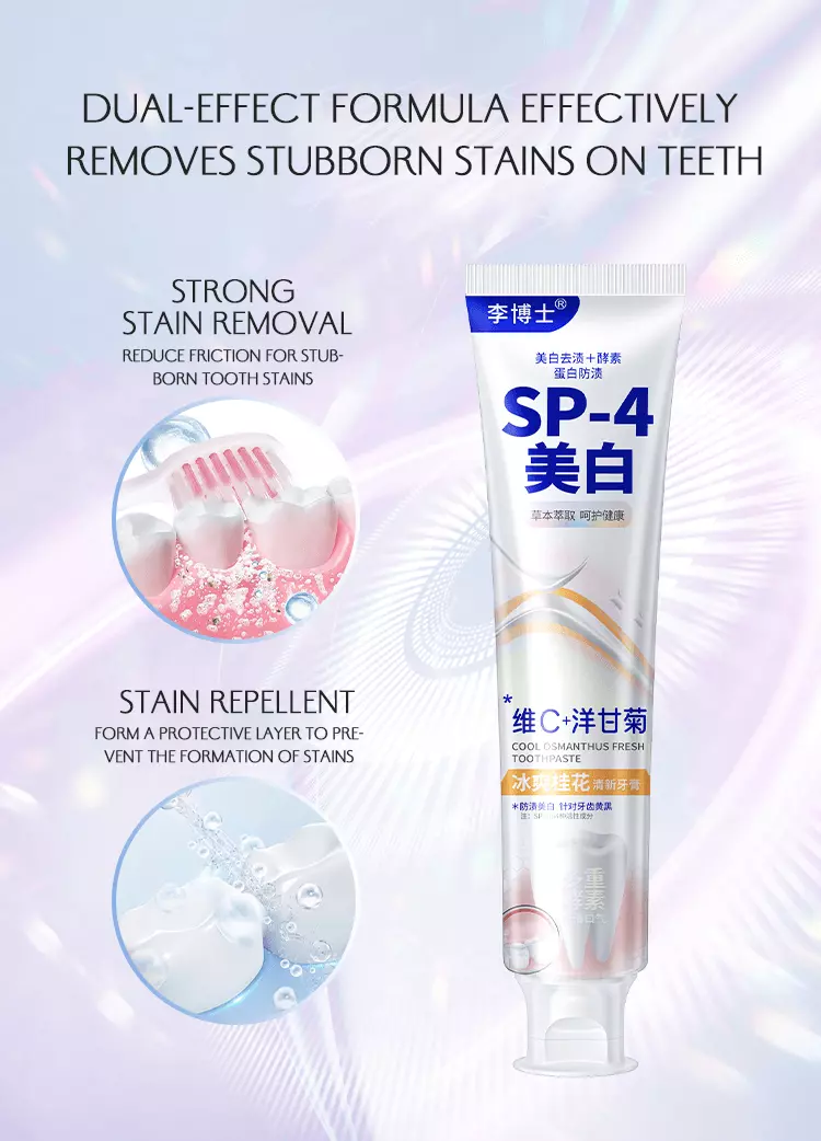 The SP-4 series represents our commitment to innovative oral care solutions for private label brands. Drawing from extensive R&D experience, this whitening toothpaste line uses a dual-action formula that gently removes extrinsic stains (from coffee, tea, and tobacco) while supporting enamel health and fresh breath. Available in three distinctive fruit tea variants that appeal to modern consumers seeking natural, refreshing options: